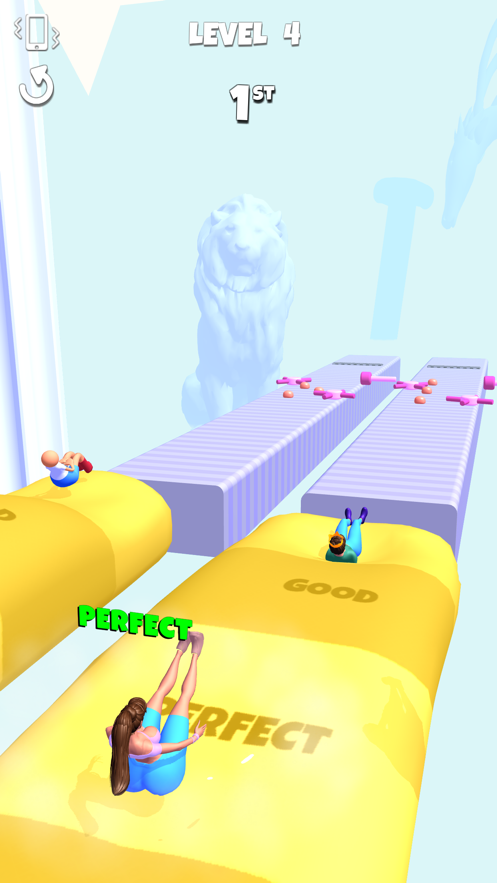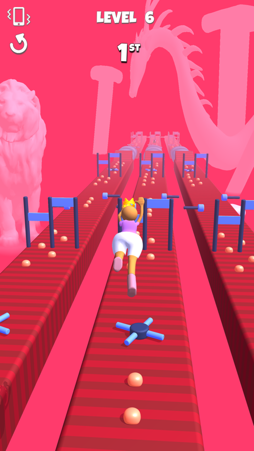 3、游戏在角色前进的时候进行闯关挑战,在不断变化的关卡中控制翘臀角色进行闯关挑战