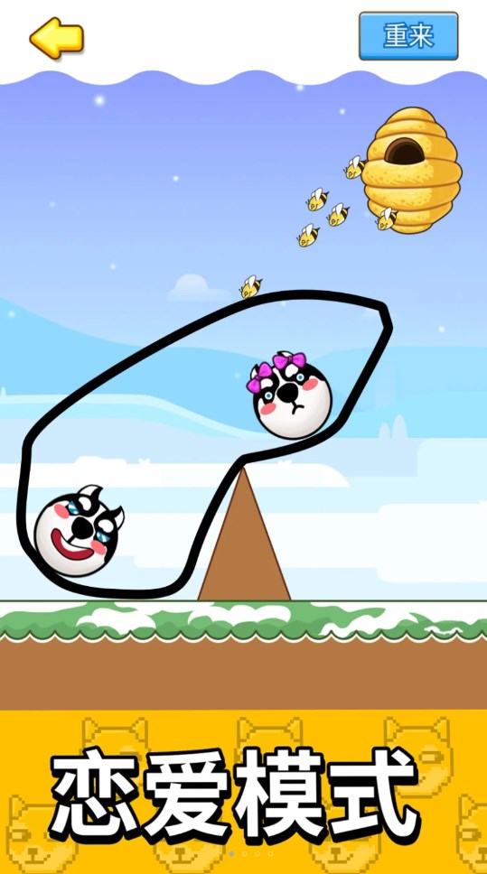 4、游戏玩家采用绘画的方式保护关卡中的狗头,蜜蜂会在线条外不断的不断发起攻击。