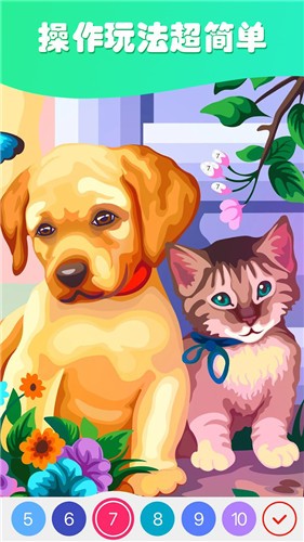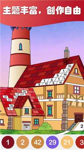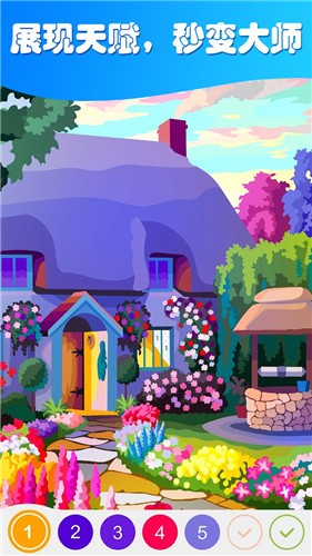 玩法休闲简单,在关卡中玩家能够看到很多没有颜色的图案,玩家能够自行的选择自己想要挑战的图案,进入关卡中根据数字的标识进行上色,相同数字的颜色填进数字相同的位置,快点下载游戏吧!
