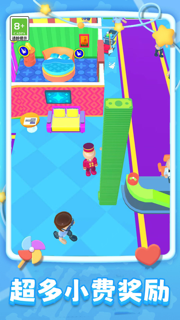 超级大酒店游戏是一款别具一格的模拟经营游戏,独具匠心的画风设计让玩家仿佛置身于一个富有活力的世界,色彩明快、充满活力的游戏配色给玩家带来舒适宜人的视觉享受。