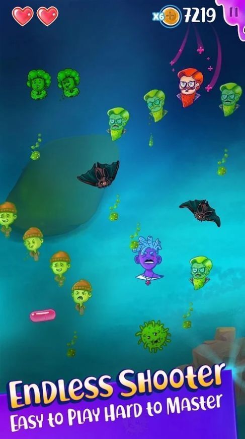 5、在病毒肆虐的人体内,玩家需以竖版弹幕射击的形式对抗不同类型的细菌。