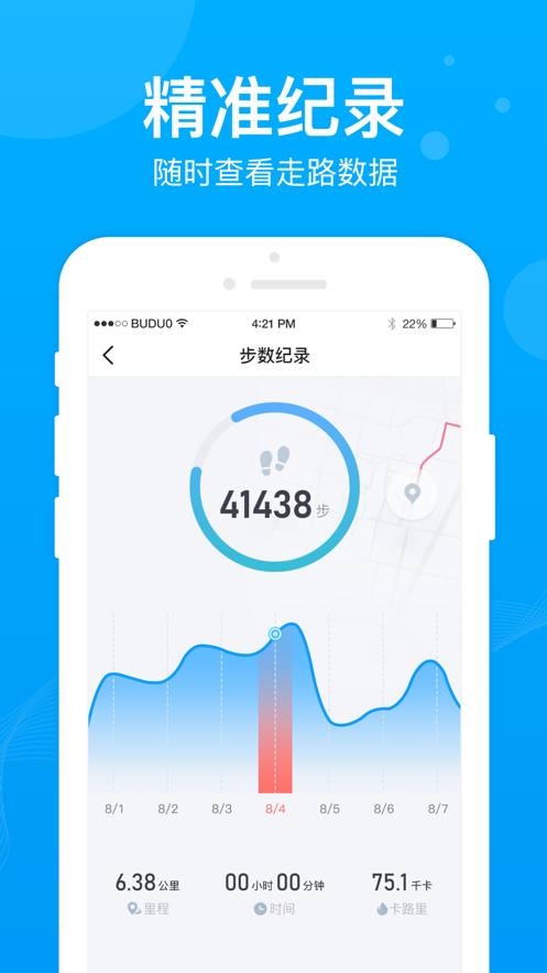 每日数据全部记录,让您时刻掌握自己的运动历程,有了走多多,变瘦变强变美丽!