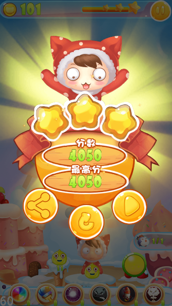 2、使用道具来消灭大量的泡泡,通过关卡的考验。
