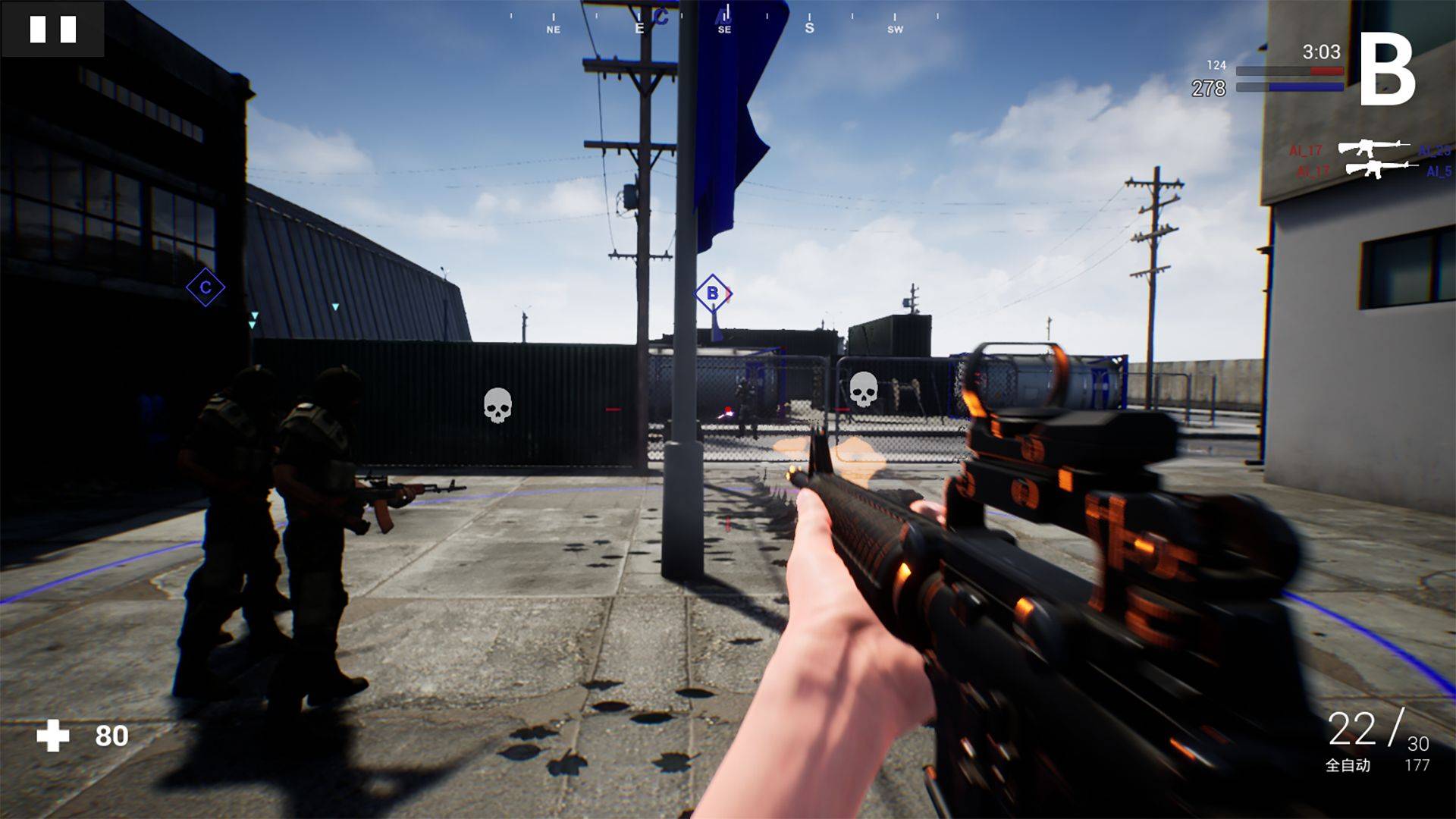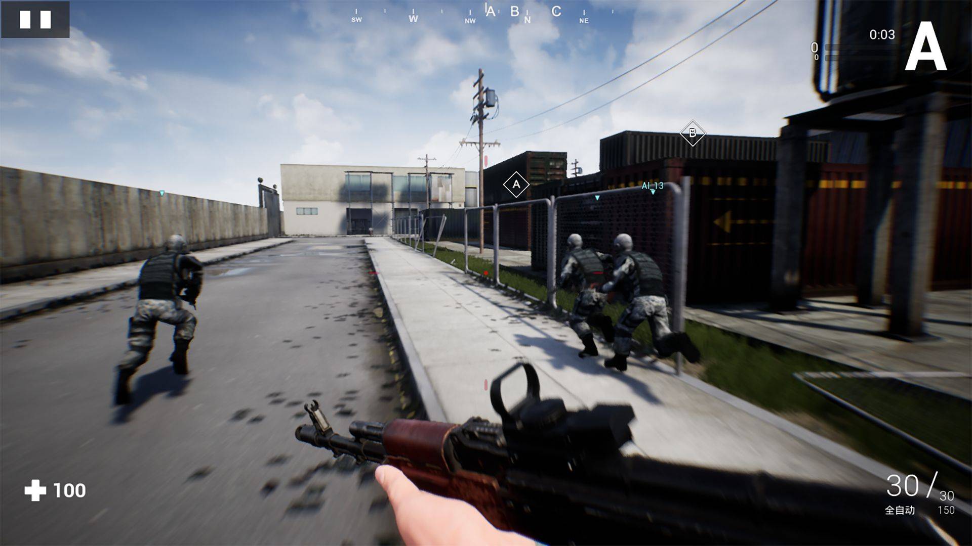 4、游戏视角是可以切换的,能够从不同的视角中控制角色自由的移动完成射击