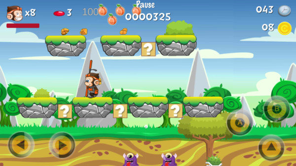 1、游戏中猴子的移动都是玩家控制的,能够在关卡的道路上不断的前进。