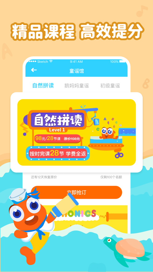 《伴鱼绘本》是一款英语学习启蒙教育应用软件,为孩子们提供英语学习的方法,在伴鱼绘本手机版上游专业的中教讲解,让家长可以随时陪伴孩子学习英文,并且为不同年龄阶段的孩子提供不同的绘本。