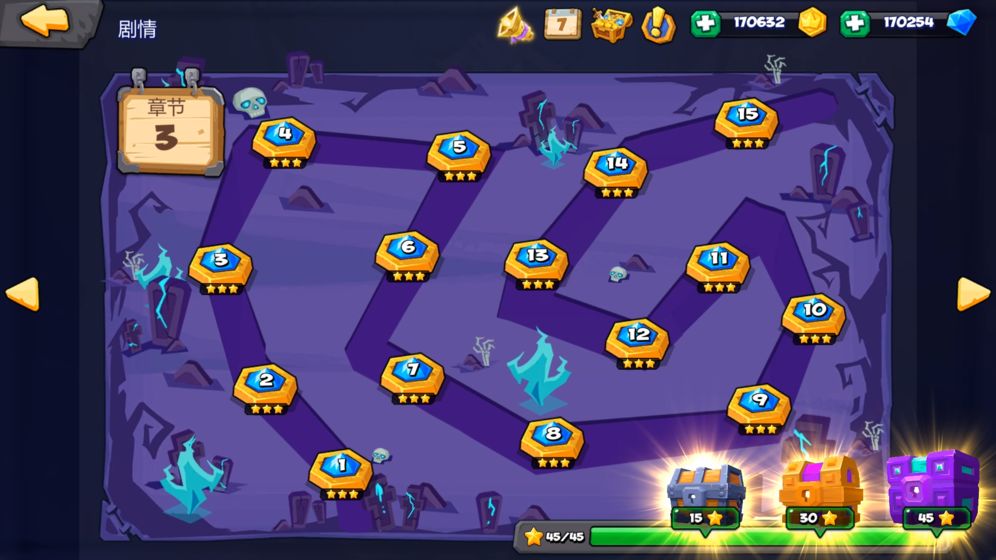 1.卡通风格的美术设计,精致细腻的游戏场景。