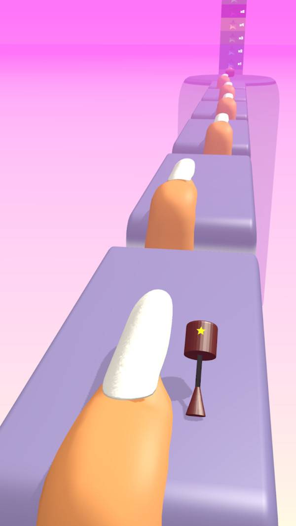 一款休闲游戏,玩家来到关卡中控制好看的指甲油进行闯关,玩家不断的闯关解锁更多好看的指甲油进行闯关,将全部的指甲涂完之后就来到了游戏的终点,会有奖励可以领取哦,快点下载游戏吧!