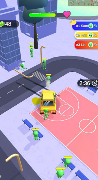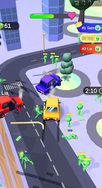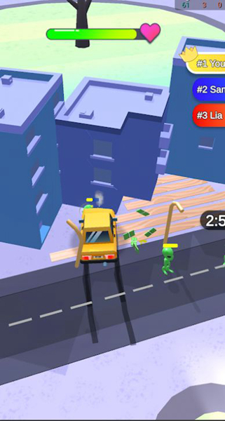 能够控制着小车在地图场景中进行一场比赛,玩家要快速的控制小车撞击场景中移动的小人,这些被撞击的小人会为玩家掉落很多的金币,这些金币能够让自己收集起来用来提升属性,快点下载游戏吧!