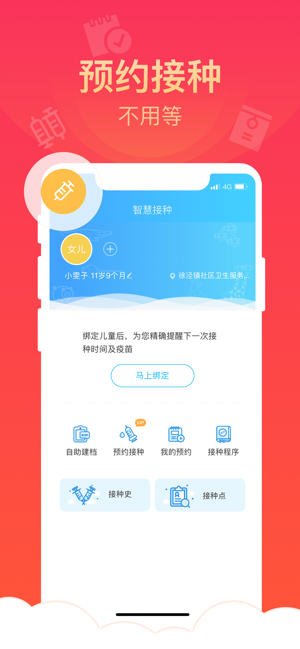 接种当天至现场快速取号,尊享健康云专属绿色通道。