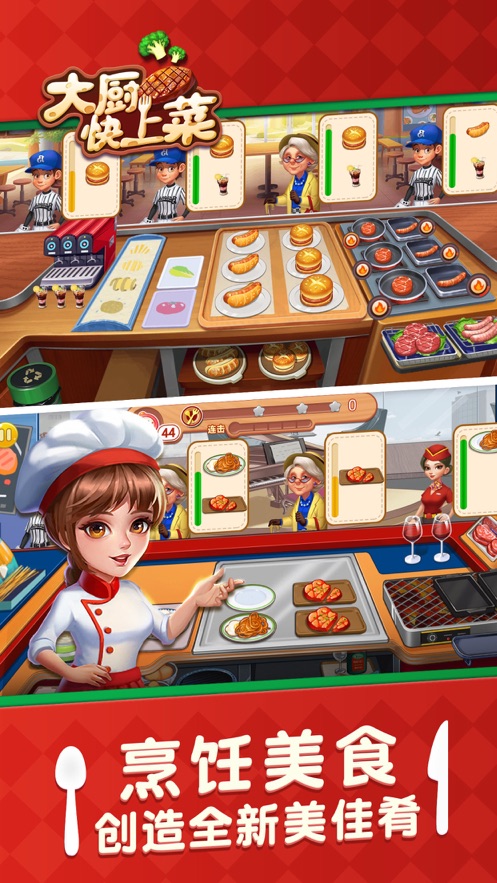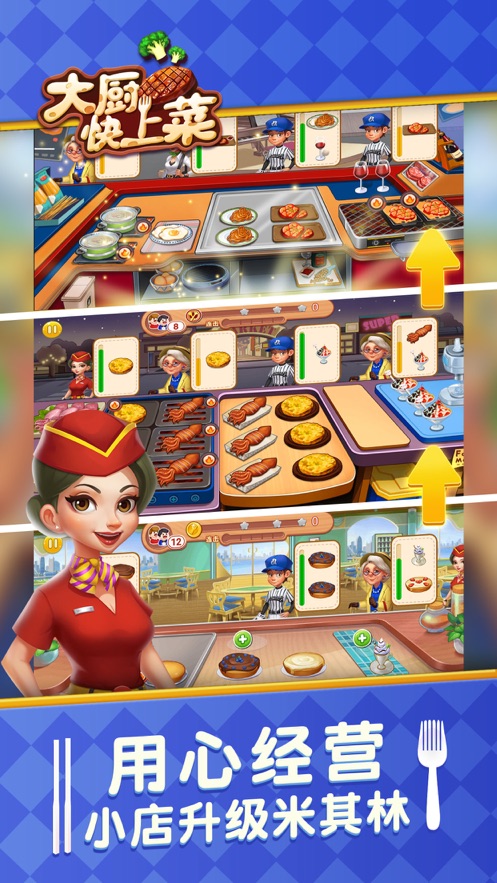 大厨快上菜是款模拟经营游戏,玩家在游戏中是一位厨师,你经营着一家餐厅,每一天玩家都会为客人制作出很多美味的食物,不同的客人会有不同的要求,玩家需要按照要求来制作符合要求的美食,快点下载游戏吧!