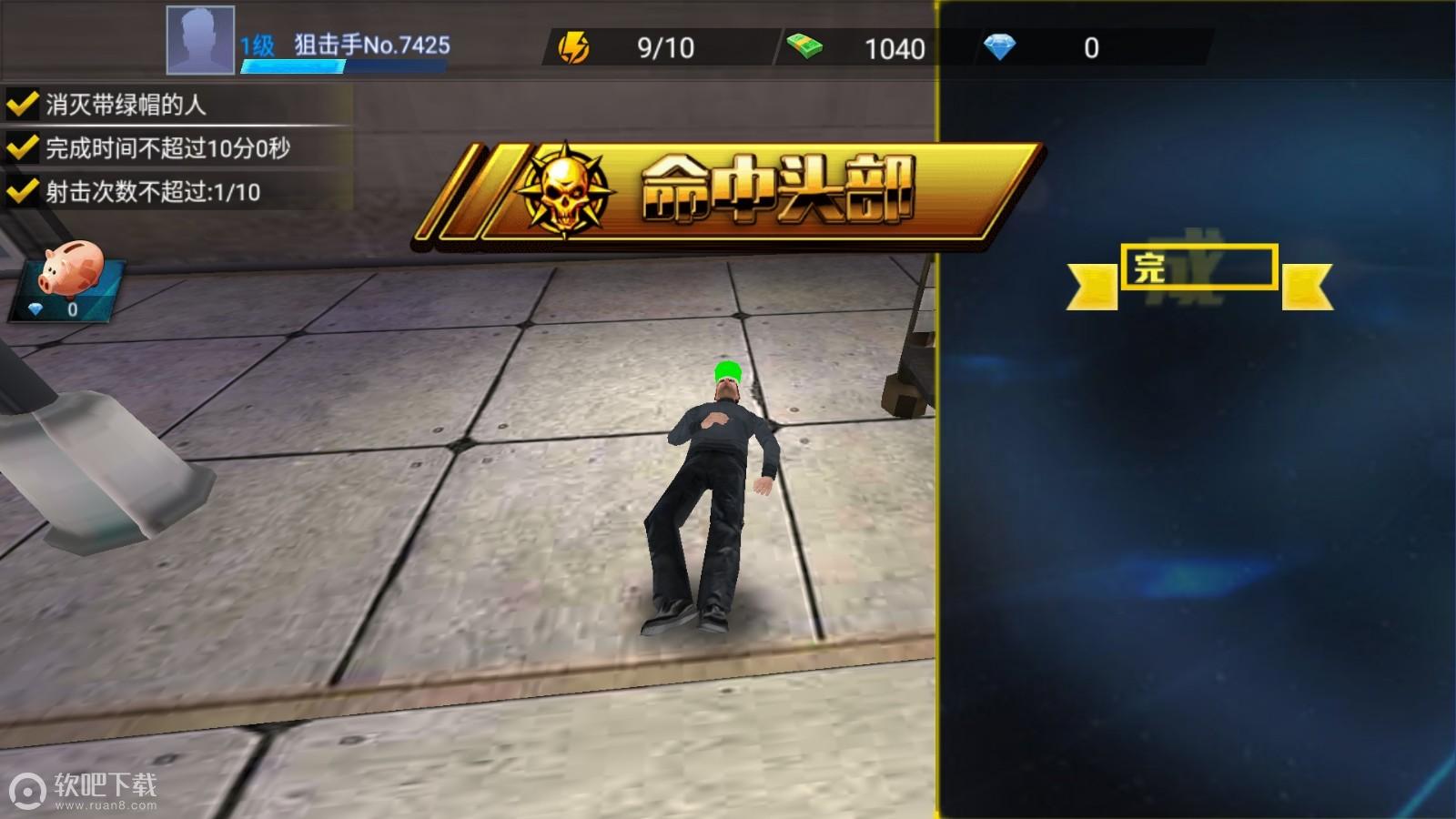 1、游戏中射击的目标是有特征的,玩家在行人中寻找特殊特征的小人开始射击任务