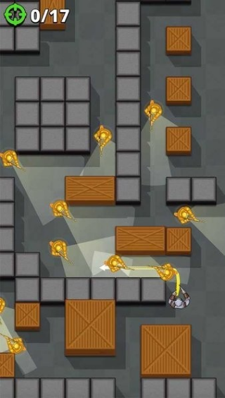 夜袭者是款休闲闯关游戏,玩家在关卡中需要不断的观察迷宫中的情景,移动角色的位置在迷宫中不断的躲避守卫的线索,在危机的时候可以使用道具帮助自己完成挑战,快点下载游戏吧!