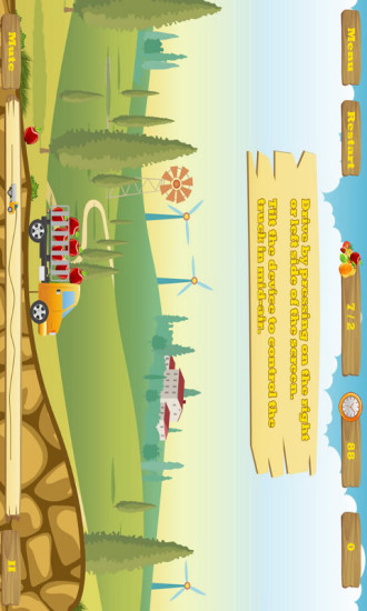 用卡车将尽量多的水果运送到市场。在运送的途中要特别小心,在指定的时间内将一定数量的水果运送到才能过关。送到的水果越多,那么得分就越高。