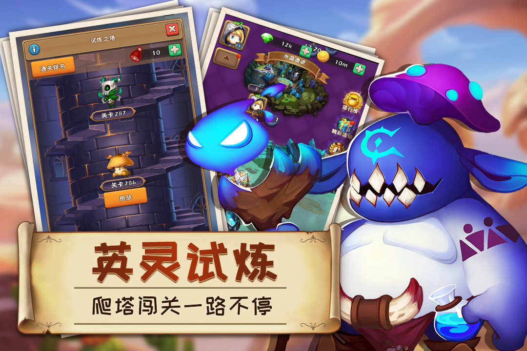 【英灵试炼 爬塔闯关畅快体验】 在无限关卡的试炼之塔中,你能体验畅快无比的通关快感!