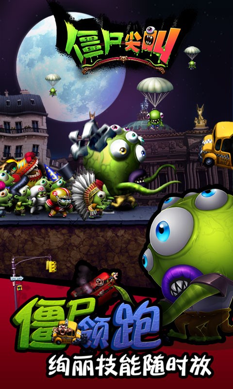 《僵尸尖叫》是一款创意横版跑酷,丰富的场景和奇趣的内容让海内外近8000万玩家为之尖叫!游戏中最吸引玩家的亮点就是颠覆了人类躲避僵尸的老套思维,让玩家不再只能用一个角色,而是操控数量庞大的僵尸军团一起狂奔!