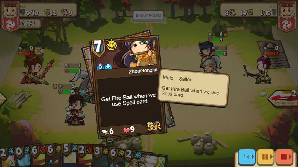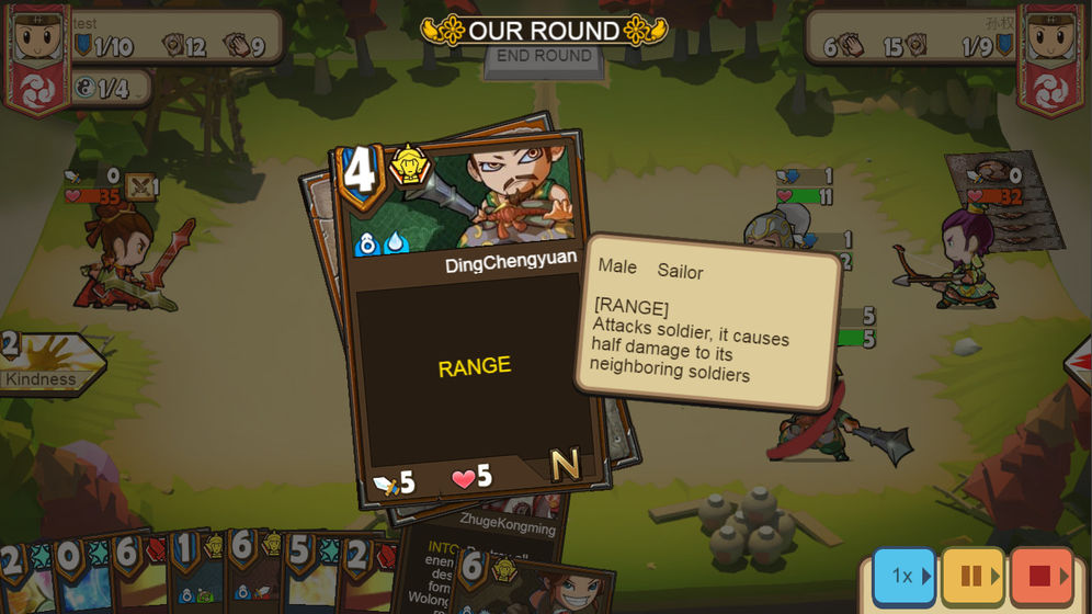 2. 为了方便角色展示,战场为带透视的横向对战,总共可以容纳10名武将参加战斗。