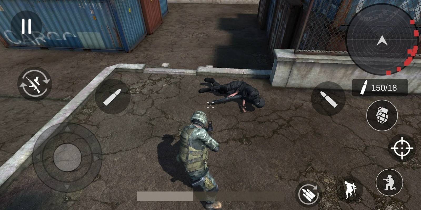 3、游戏中有激烈的射击战斗的场景,控制角色灵活上的移动自己的位置躲避敌人的射击