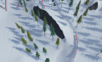3、玩家可以在山脉中自由穿梭,寻找最佳的滑雪路线,发现隐藏的秘密物品。