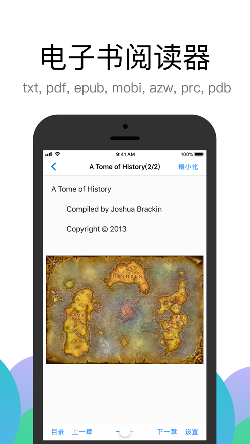 • 全格式电子书阅读器(txt, pdf, epub, kindle, mobi, azw, azw3, azw4, prc, pdb)