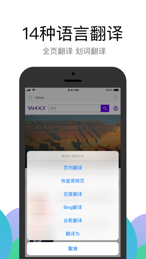 • 内置14种语言翻译,支持全页翻译和划词翻译