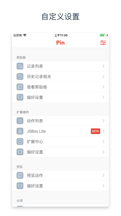 在剪贴板插件上面,虽然只有右侧有翻页按钮,但其实左侧也一样可以翻页,只是为了简洁,没有让两个按钮显示出来,他们是隐形的。并且按钮支持长按,试试长按往下翻的按钮,列表回直接滚到底。 在新版本里面,PIN 记录列表上面支持 3D Touch 操作,对其重压可以查看全文,不支持 3D Touch 的设备这个动作会被长按代替。