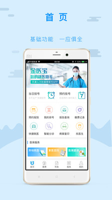 金医宝是一款天津医疗服务APP,为患者提供预约挂号、预约报道、当日挂号、诊间支付、等便民、利民服务,同时还为用户提供了注册、登录、实名认证、绑定医保卡、修改密码、就诊人管理等基本功能。