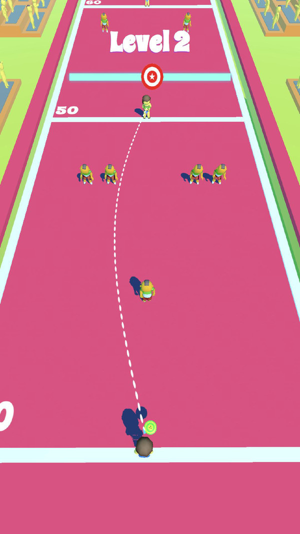 一款休闲游戏,玩家控制小人和队友一起来到关卡中游戏中进行投掷飞盘,你能够得到多少分呢?