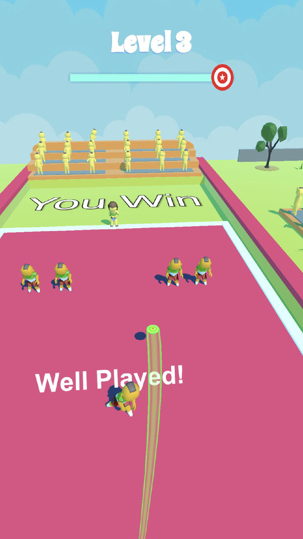 游戏的操作非常的简单,玩家滑动屏幕就能够控制小人扔飞盘的角度