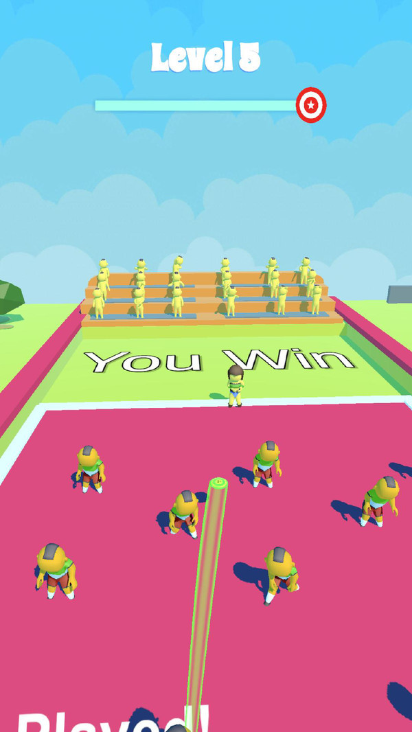 游戏的中间会有很多的小人阻碍玩家,玩家需要小心这些小人将飞盘扔给队友