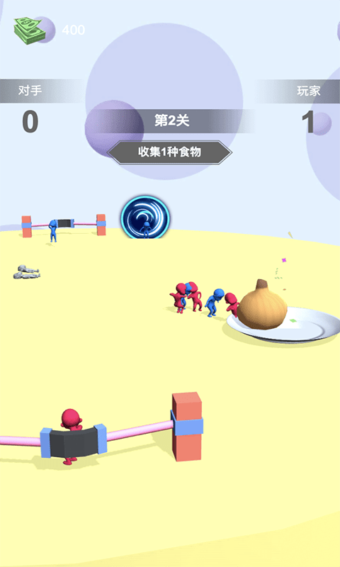 1、游戏中关卡的小人会不断的增加,这些小人会帮助玩家抢夺食物完成收集任务
