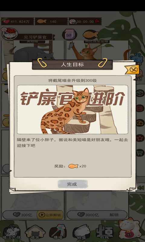 3、游戏里面的猫咪都是需要解锁的,玩家需要根据每一只猫咪的条件积累解锁的道具