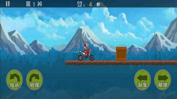 1、游戏的关卡里面有很多的障碍需要躲避,控制摩托车在不同的地图中进行闯关