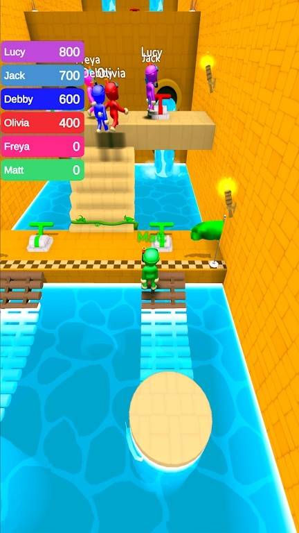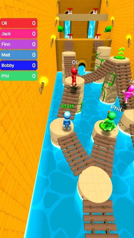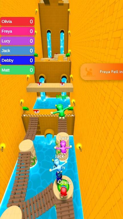 玩家可以控制颜色皮肤不同的橡皮人在关卡中闯关,洪水的出现导致关卡中的水位不停的上升,玩家需要控制橡皮人经过不同的道路在水位到达终点之前来到终点完成挑战,快点下载游戏吧!