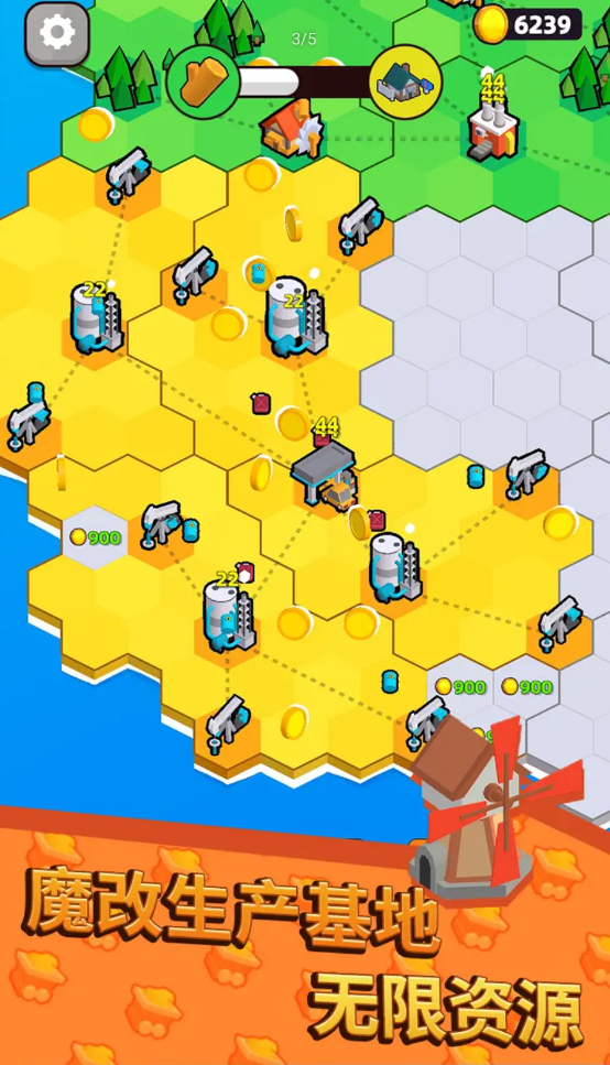 3、游戏中被自己解锁的工厂和资源每时每刻都在为玩家增加金币的数量,玩家可以使用。