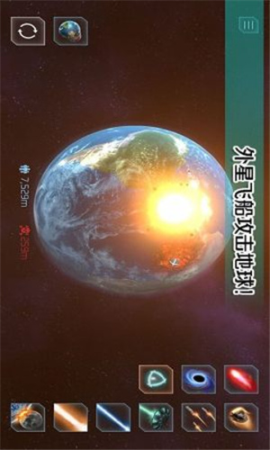 1、玩家可以使用武器对行星进行毁灭挑战,体验刺激的爆炸效果。
