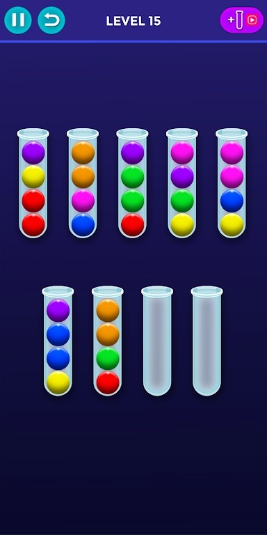 一款休闲分类玩法的游戏,玩家能够来到关卡中不断的移动试管里面的小球,这些小球的颜色都是不同的,只有将相同颜色的小球移动到同一个试管中才算完成任务,快点下载游戏吧!