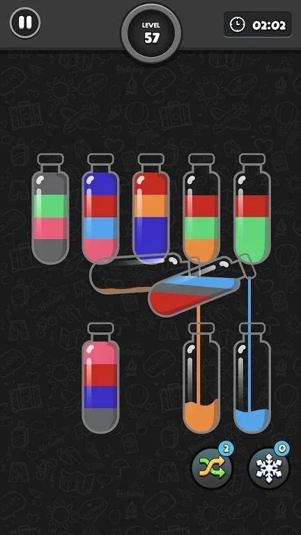 2、游戏的关卡是没有时间限制的,玩家来到游戏的关卡中可以慢慢的移动瓶子进行分类