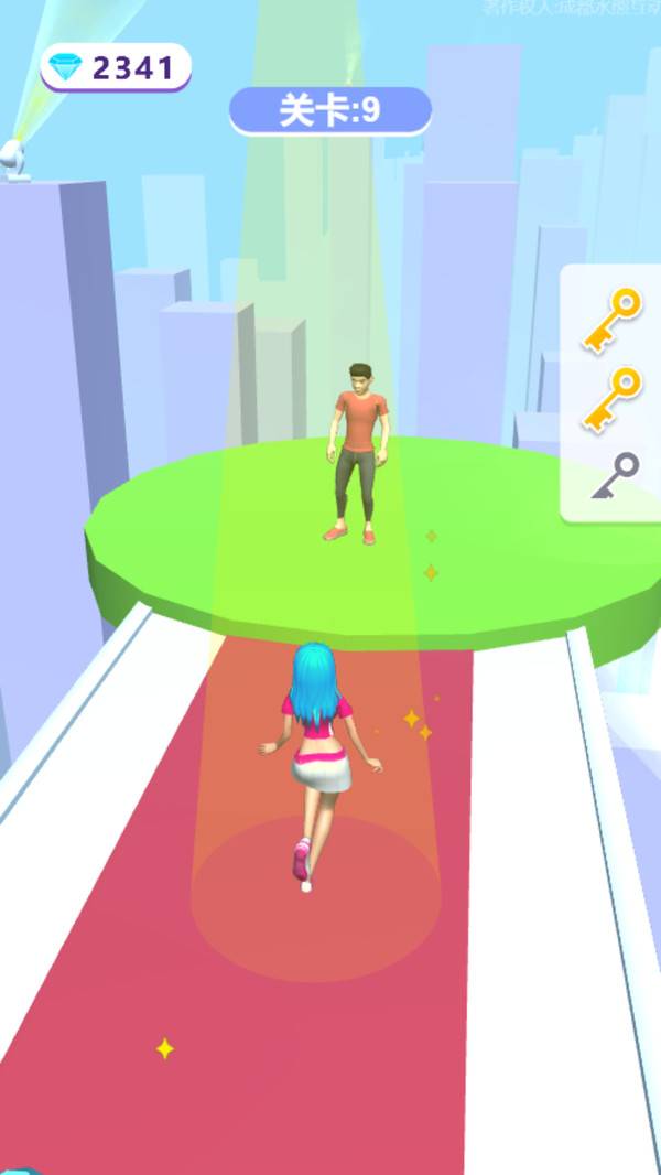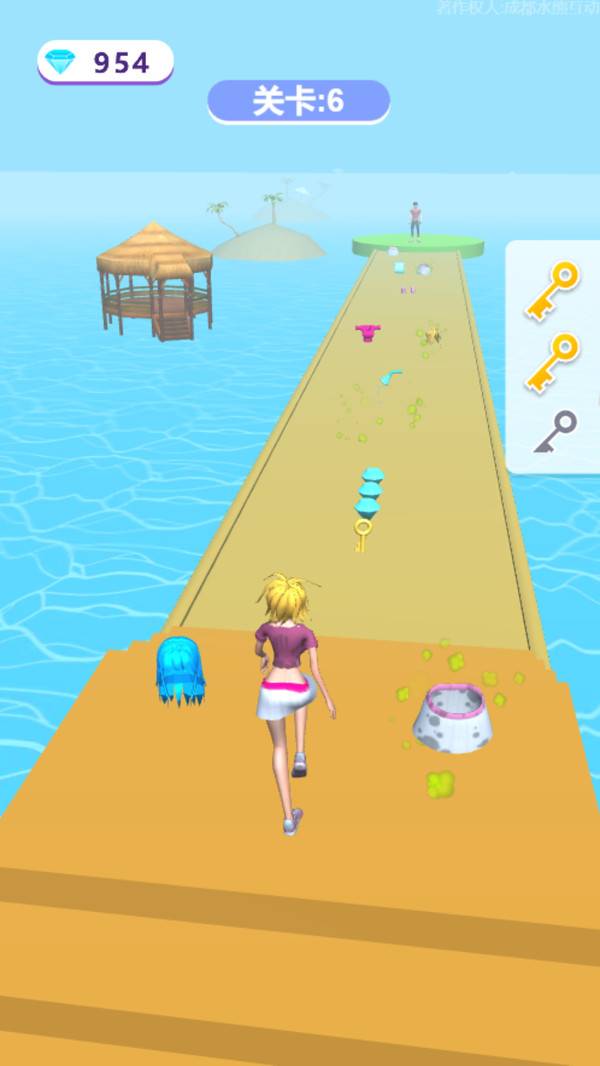 3、游戏里面有很多的障碍需要自己躲避,控制少女避开不好的服装道具漂亮的到达终点
