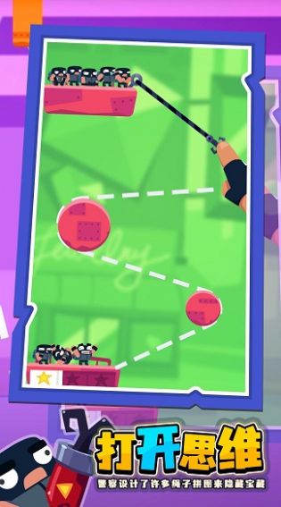 能够在关卡中帮助所有的盗贼安全的移动,但是想要在不断变化且障碍也非常多的关卡中挑战需要仔细的思考,能够在关卡中用手指画出很多的线条完成移动盗贼的任务哦,快点下载游戏吧!