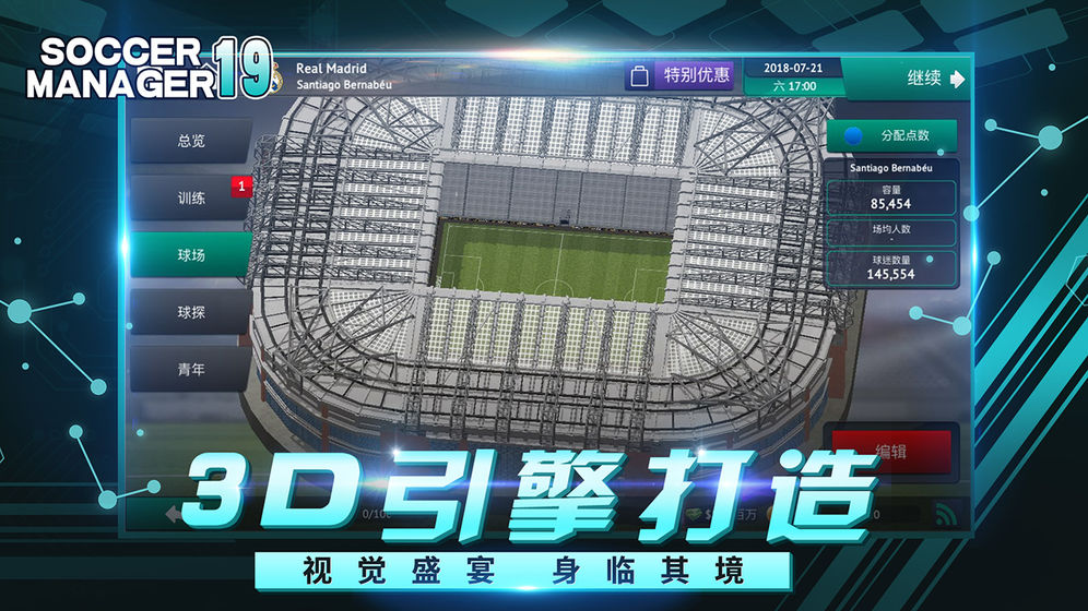 最深入训练系统:你可以随时控制球队训练,改善球员属性,从零开始打造球坛巨星,同时用心青训,为球队培养未来力量。