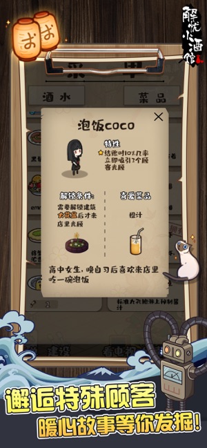 用金币解锁店内设施,以及菜品酒水,为下一波顾客做好准备