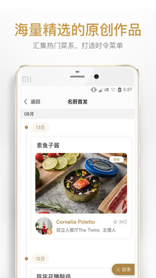 海量精选的原创作品,汇集热门菜系,打造时令彩蛋。