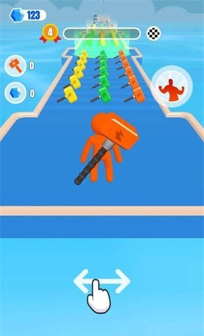 一款闯关游戏,玩家帮助橡皮人收集锤子进行闯关,在关卡里面还有很多其他颜色的锤子,玩家不能收集颜色不同的锤子影响闯关,穿过不同的圆环改变收集的颜色,快点下载游戏吧!