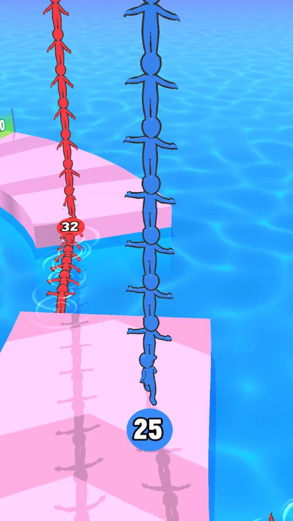 玩家不断的增加自己的小人,这样在关卡中遇到断开的地方也不用担心过不去,但是在前进的时候需要小心其他的玩家会撞击玩家,导致人梯散开就不断在道路上面移动非常影响速度,快点下载游戏吧!