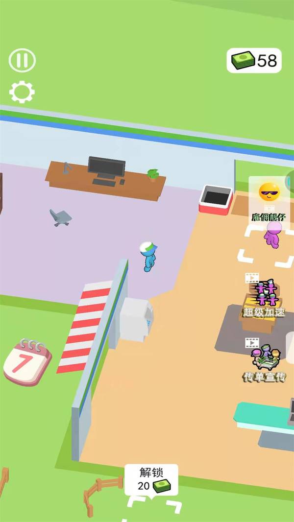 3、游戏玩家控制小人在超市和外面来回的移动,处理大大小小的事情经营超市哦