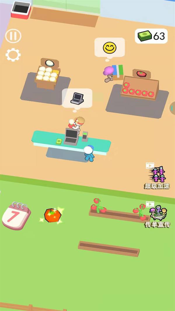 开个大超市是款模拟经营游戏,玩家超市的面积越大能够容纳更多的客人,但是客人越多商品就卖的越快,玩家就需要加快移动的速度,加快收获和加工的速度满足这些顾客的购买,快点下载游戏吧!