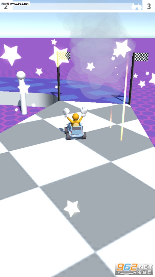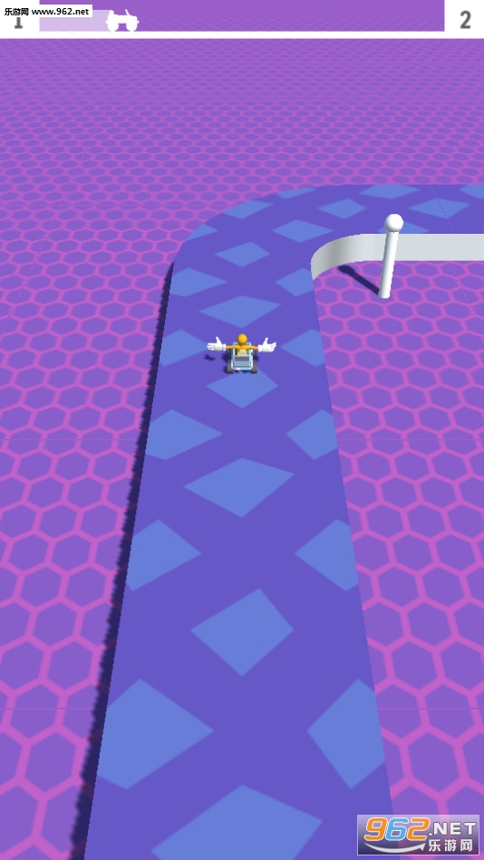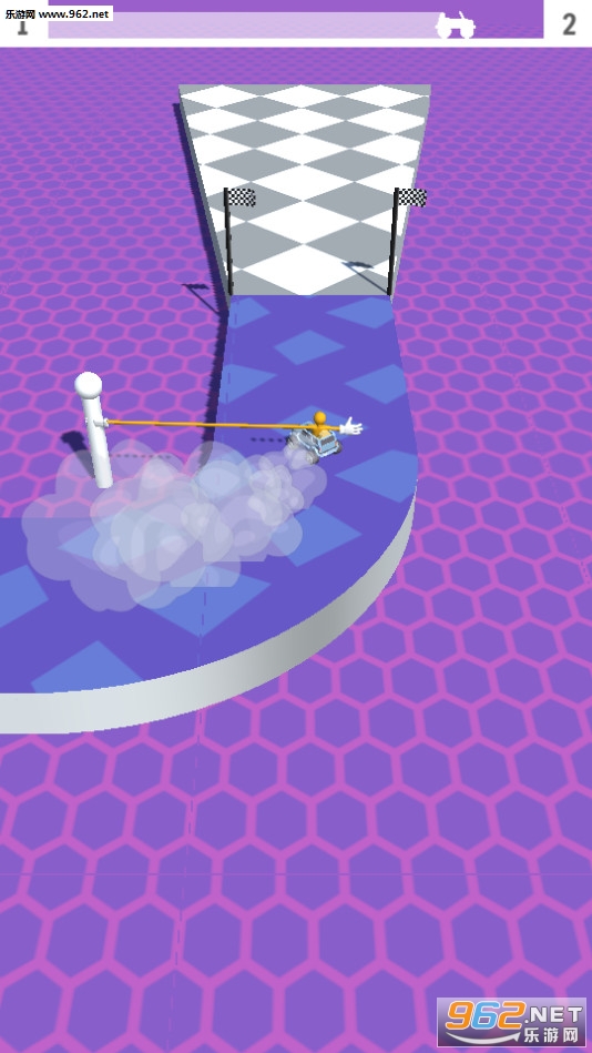 3、传统赛车游戏中,方向盘是必不可少的控制工具,你将体验到一种全新的驾驶方式——通过抓取弯道旁的旗杆来完成漂移。