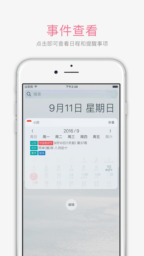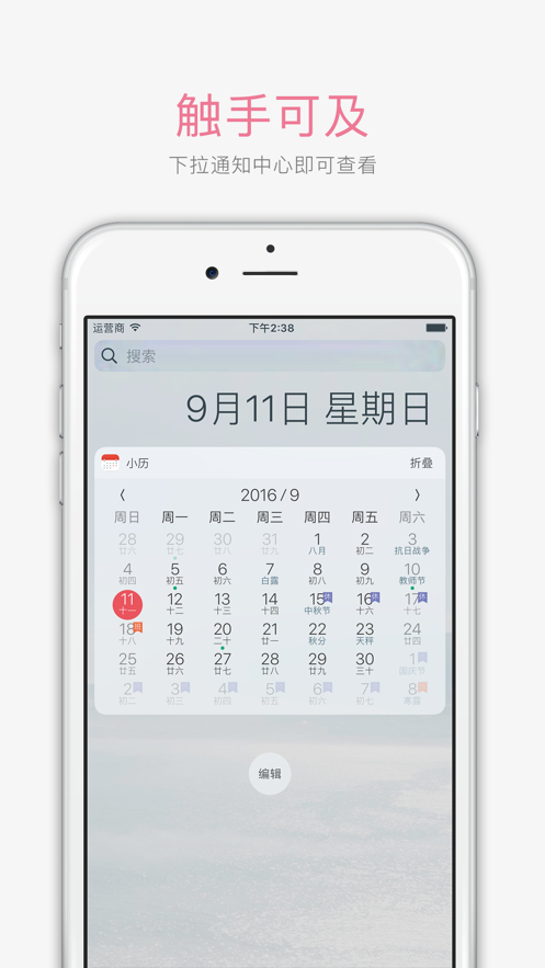 《小历》是一款非常简约方便的日历app,ta会显示在通知中心,这样大家只需要下滑就能快速查询,使用起来非常的方便,同时小历app还包含农历功能,有需要的朋友们赶紧下载吧!