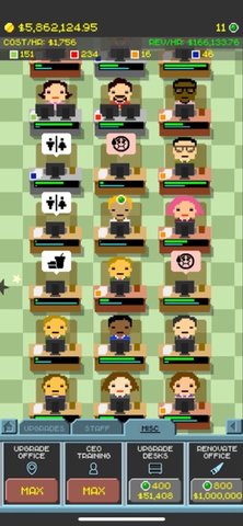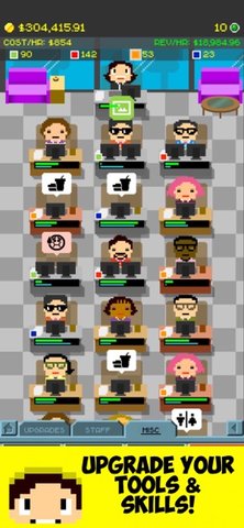 《创业模拟器》是一款像素风格的模拟经营休闲类手游,玩家需要想尽办法将自己的公司慢慢做大,不断的为自己招募高水准的员工,完成各种大额商业交易,从而逐渐扩大自己公司的规模,最终成为一名商业大亨。